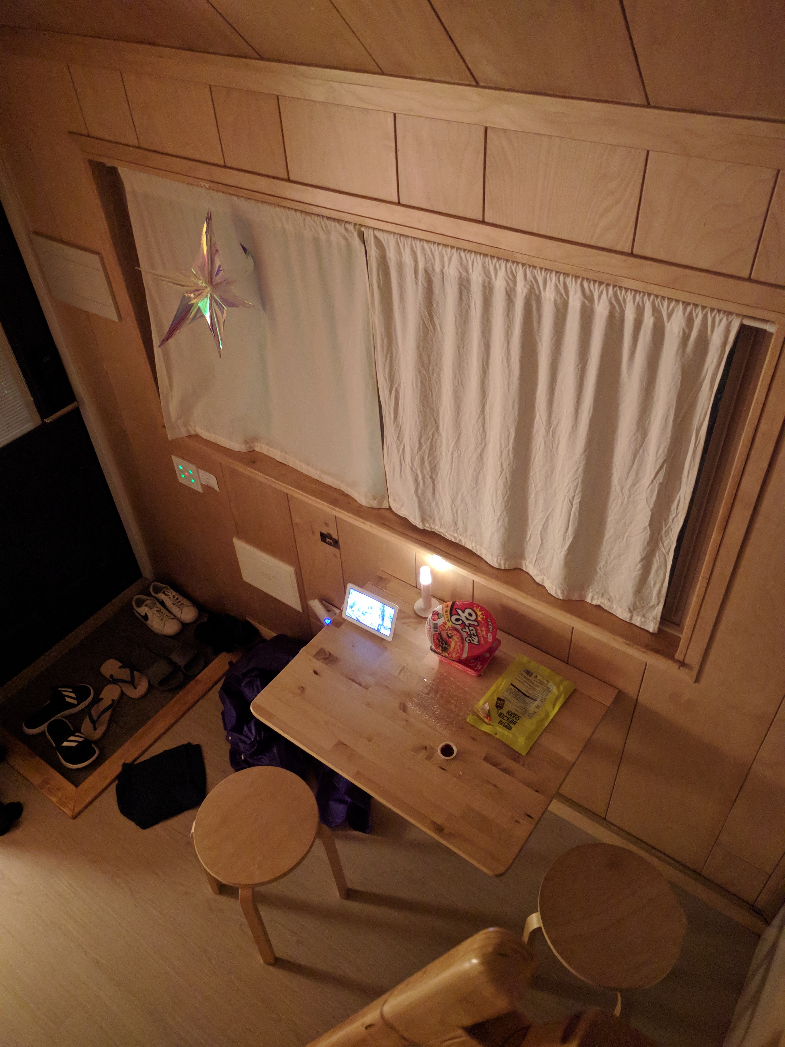 작은 다락방 같은 2층이 사다리로 연결되어 있었고 나는 2층에서 그는 1층에서 시간을 보냈다.