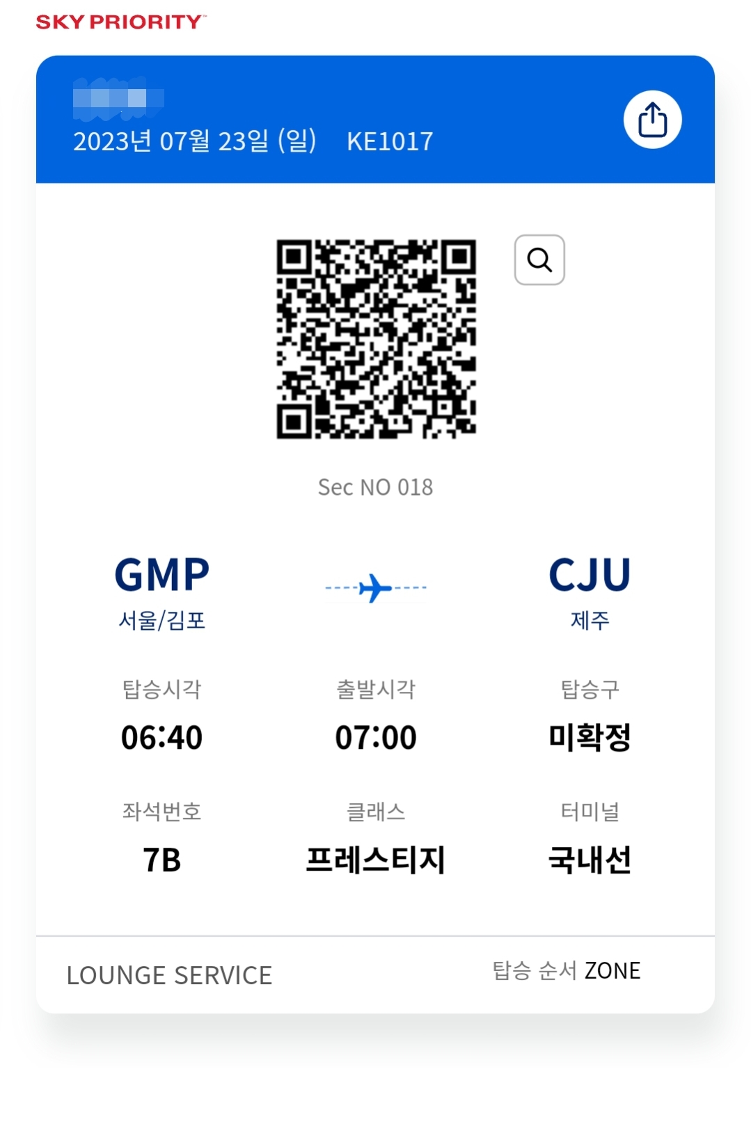 미리 발급받은 프레스티지 모바일 탑승권으로 확인을 받았다.