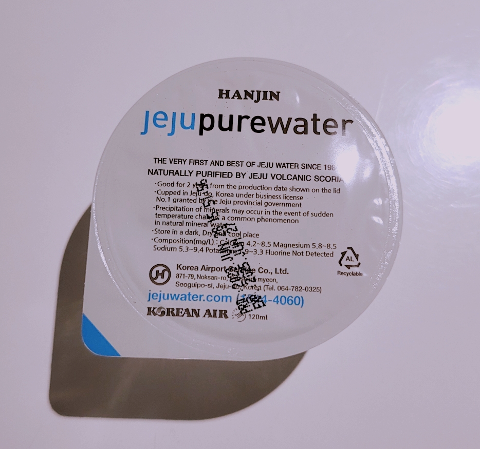 특이하게도 친구가 집어온 물은 패트 생수병이 아니라, 기내식용으로 나눠주는 물이 담긴 작은 팩이었다.