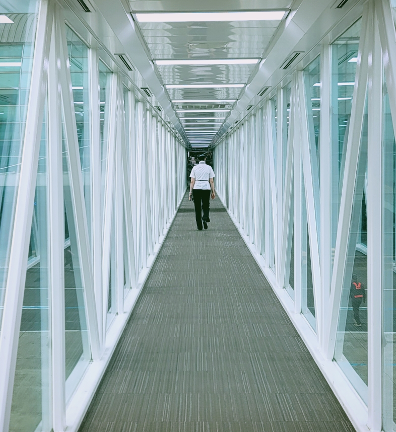 전면 통창으로 밑을 내려다보니 각 게이트에서 분주하게 움직이는 공항 이용객들의 다양한 모습이 보였다.